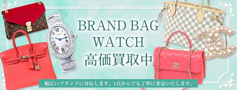 ルイヴィトンなどのブランドバッグ・小物をはじめ、金・プラチナなどの貴金属、ダイヤモンドなどの宝石類、ロレックスなどのブランド高級時計、 洋服・和服、電化製品、金券など幅広く買取しております。